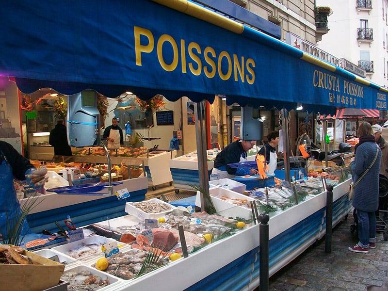 In addition to visiting the butcher, we also visited the bakery, the cheese shop, the fishmonger, and the greengrocer. At each stop, we picked up fresh, in-season ingredients to make a full meal.