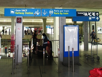 One of the easiest and cheapest ways to get from the CDG airport to Paris is by train — which is called the RER-B. The RER-B is well marked so just follow the signs. Depending on your arrival terminal, you may have to take a free shuttle train or bus to get to the RER-B. Again, everything is well marked so it’s easy to find where to go.